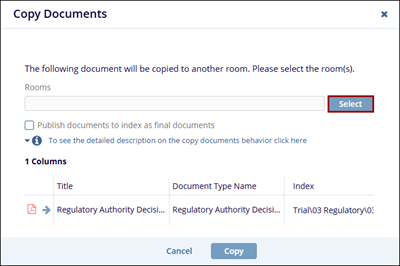 - Select the documents to copy to other rooms.