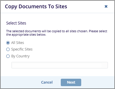 - On the Copy Documents to Sites window, select sites pertaining to specific criterion