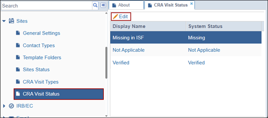 To edit the CRA Visit Status, follow the steps below: