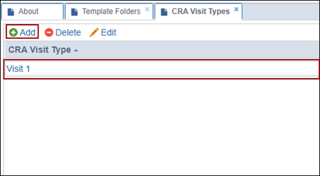 - On the CRA Visit Types settings page, click +Add.