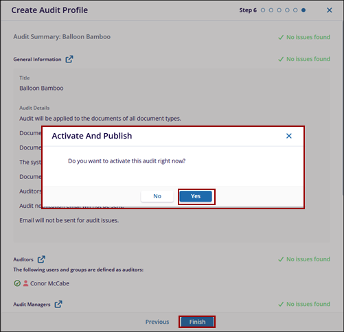 - Once done click Finish button. The Activate And Publish pop-up window is displayed with No and Yes button.