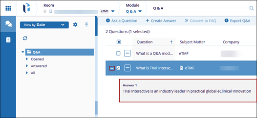 Administrator users and those users indicated as Subject Matter Experts can create answers to questions in the Q&A module.