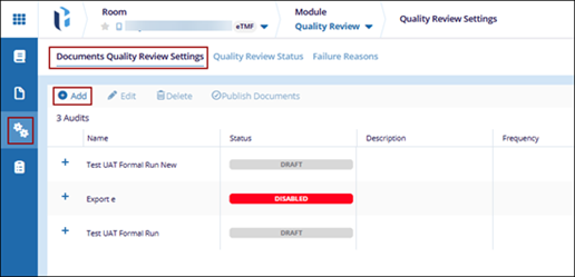 - Navigate to the Quality Review Settings and select the Documents Quality Review Settings tab.