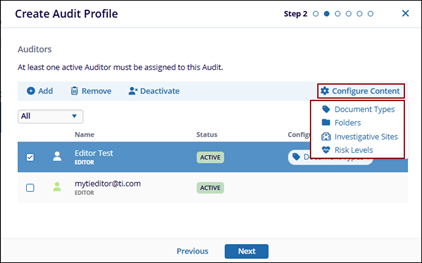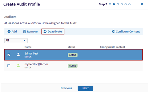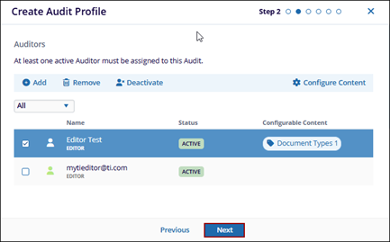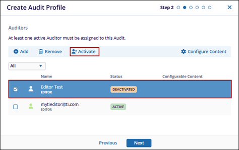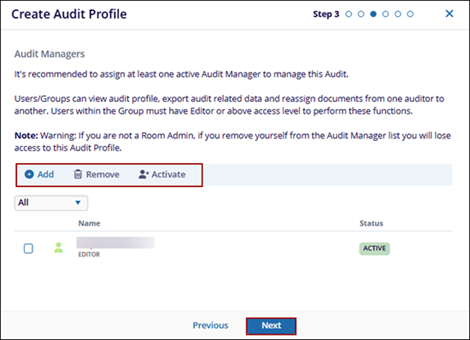 - In Step 3, add, remove, activate, deactivate audit managers by repeating steps related to adding auditors.