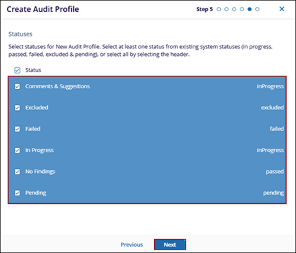 Note: The users cannot be the same for Audit Responders as those who are added as Auditor Managers. - In Step 5, select the quality review statuses and ensure to include at least one