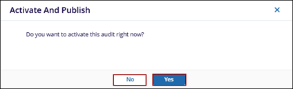 - On the Activate and Publish pop-up, click Yes to activate the audit
