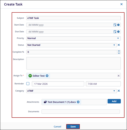 Note: Users can assign tasks to other users only if the Tasks action is enabled in their profile through the User Management module.