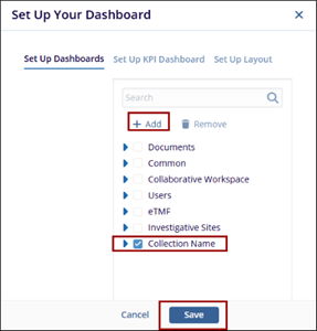 - Click on the Add button, and a new entry will appear under the list of available dashlet as (Collection Name). While adding a new dashlet, the user has to mention the Title and Description in the left-side fields.