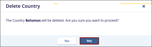 - On the Delete Country confirmation popup, click on the Yes button.