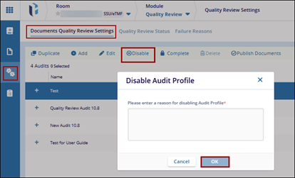 - From the list, select the audit and click the Disable button in the top menu bar.