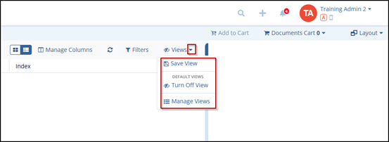 The Views dropdown provides options for Save View, Manage Views, or Turn Off View.