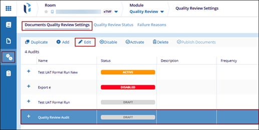 - Navigate to the Quality Review module and open Quality Review Settings.