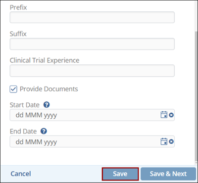 - Clinical Trial Experience: Enter or update the contacts clinical trial experience.