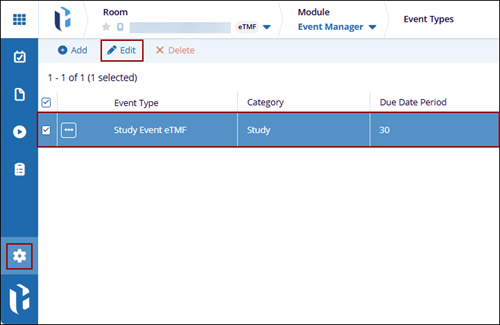 - Navigate to the Event Manager module and, click on the gear icon from the left-hand navigation pane.