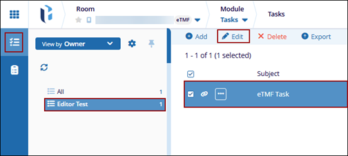 - Select a task from the list and click the Editbutton from the top menu