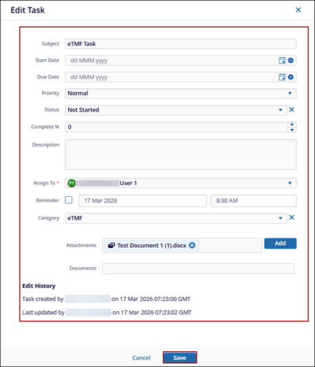 - On the Edit Task window make the required changes