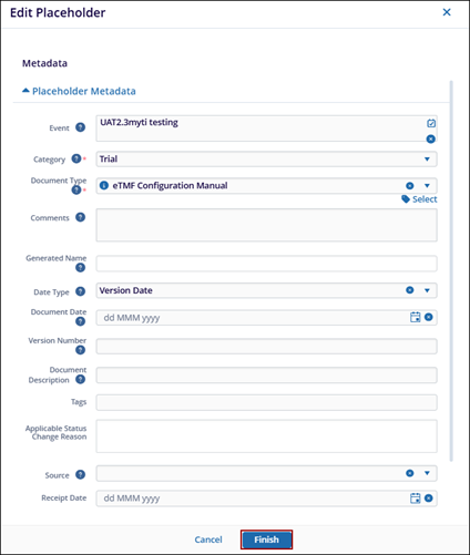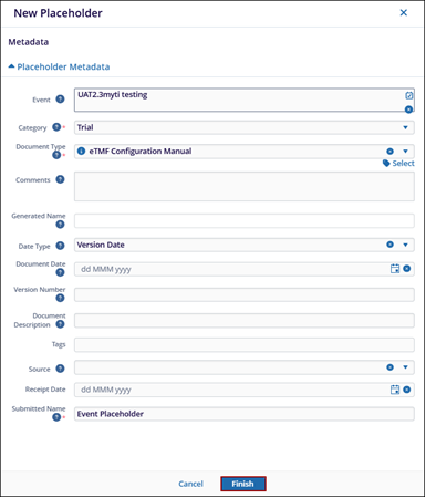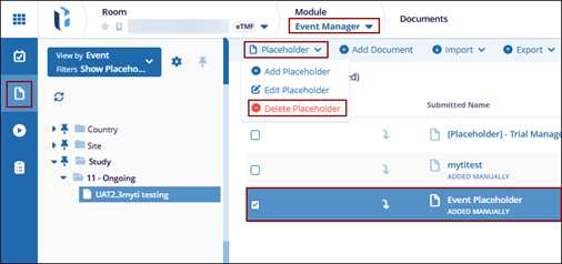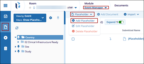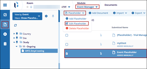- The new placeholder will be added under the selected event and will appear in the list with a Missing completeness status.
