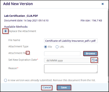 Follow the steps below to manage Expired documents by replacing them with updated versions: