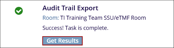 - On the Audit Trail Export popup displaying the success message, click on the Get