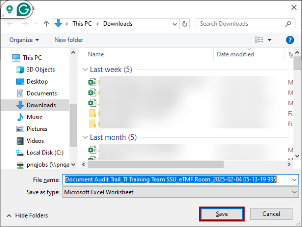 - Download the Microsoft Excel Worksheet containing the export data into the local system.