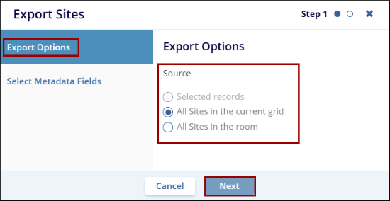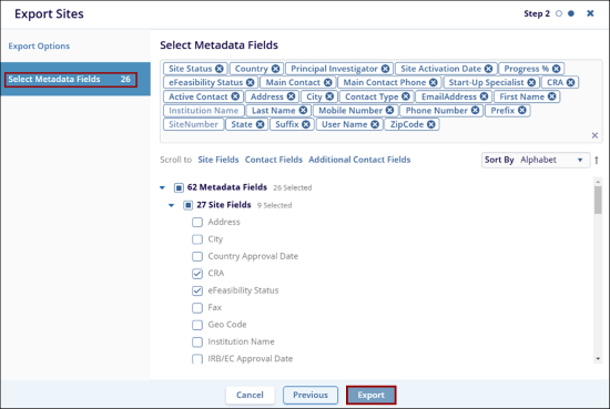 - In Step 2, choose the metadata fields to include in the export file and click on the