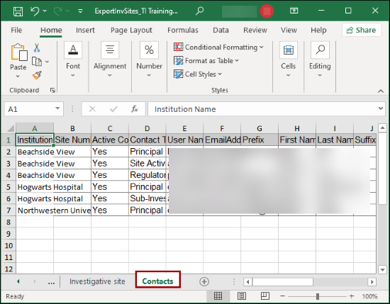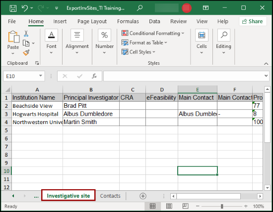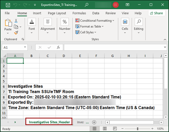 - Within the downloaded file, click on the Investigative Sites_Header tab to view