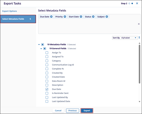 - On the Select Metadata Fields step, select the required metadata fields from the