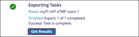 - On the Exporting Tasks confirmation pop-up, click Get Results to download
