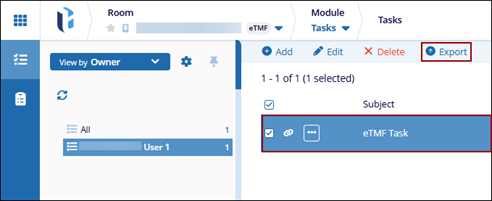 - Select a task from the list and click the Exportbutton from the top menu