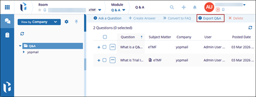 Select a question and click Export Q&A from the top menu bar.
