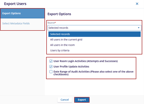 - Use the options given to identify which user data selection should be exported, when the user completed setting export criteria.