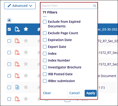 - The selected filters will display above the grid. Use the dropdown arrow next to