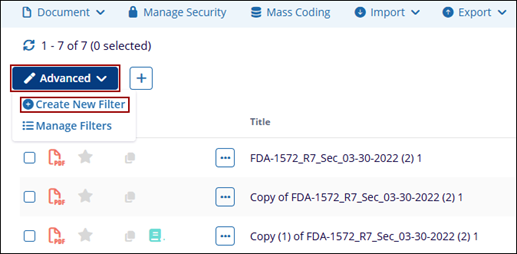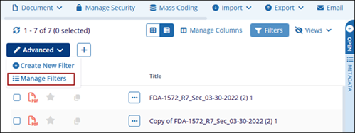 - Users can perform the following activities on the filters in the Manage Filers window: