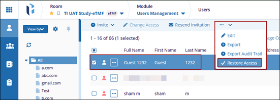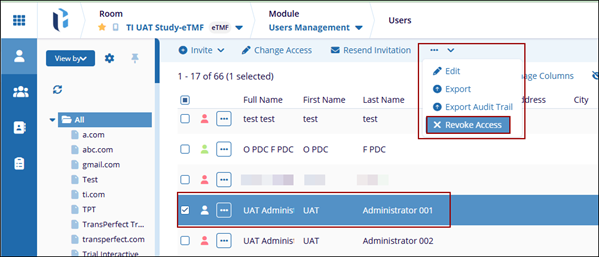The Revoke Access option removes the selected user’s access to the study/room, preventing them from logging in or performing any further actions.