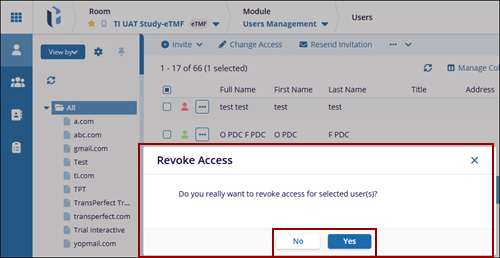 - The Revoke Access confirmation window appears. Select Yes to proceed with the