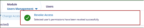 Once you click Yes, a notification window appears confirming that the selected user's permissions have been successfully revoked.