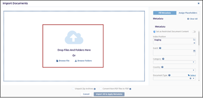 - Unpack Zip Archives: Enable this option if a ZIP folder is uploaded and the documents within the ZIP folder need to be uploaded as separate documents.
