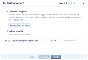 - In the Metadata Imports window, click on Download Template to get a pre-formatted file that contains the required metadata fields.
