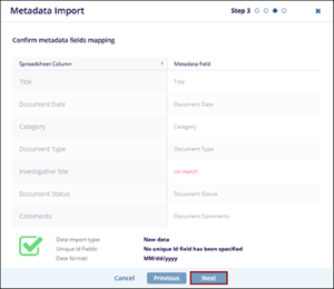 - Confirm whether the metadata field mapping is accurate and click on the Next