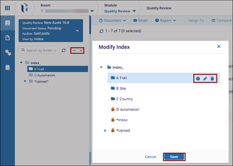 The Modify Index option enables users to create, update, or remove folders and subfolders within the defined hierarchical structure.