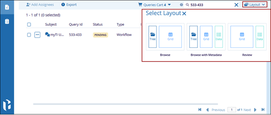 The layout menu, above the metadata pane, allows the user to choose from several potential page layouts.