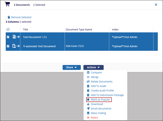 Administrator, Manager, and Editor users can mark certain documents as popular using this option.