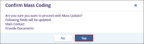 - On the Confirm Mass Coding popup, click on the Yes button.