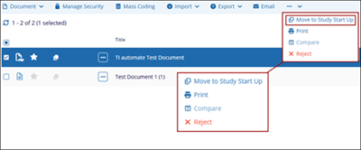 To move documents to Study Start-Up, follow the steps below: