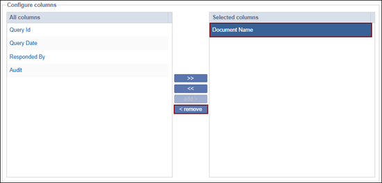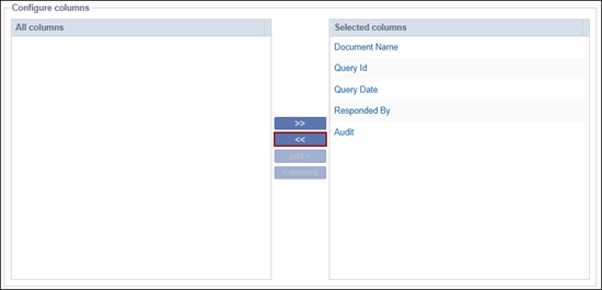 - Click the << icon to remove all columns from the Selected columns
