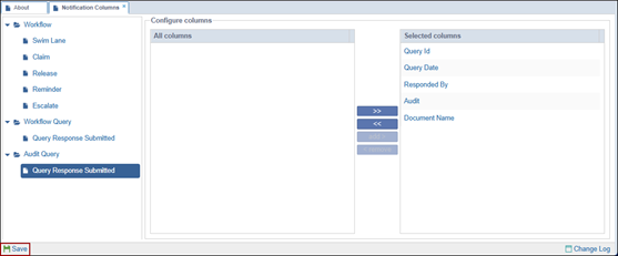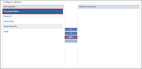 - Under the Configure Columns section, click on the >> icon the add all columns