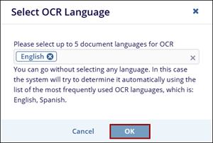 - On the Select OCR Language popup, select up to 5 languages for the OCR.
