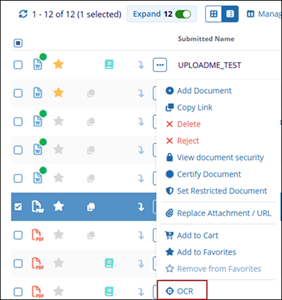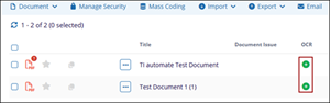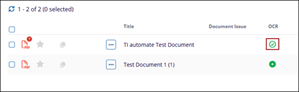 - Once OCR is successfully reverted, the OCR column within the documents grid displays