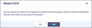 - On the Revert OCR confirmation popup, click on the Yes button.