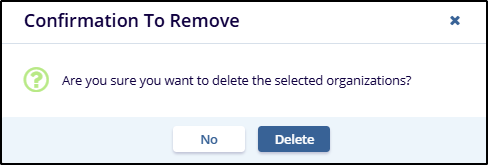 - From the organizations list, select the organization to delete by checking the box next to its name.
